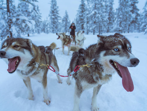 Ontbijt in het hotel. Ga met deze temperamentvolle husky's mee terwijl ze uw slee door het prachtige winterlandschap van het Inari-meer trekken. Voel de opwinding van de honden en geniet van de serene stilte van de natuur. Elke slee is geschikt voor twee gasten, waarbij de ene in de slee zit en de andere de slee bestuurd. Halverwege de tocht kunt u wisselen van positie zodat beide gasten de sensatie van het sleeën ervaren. 's Avonds vertrekt u op een tweede avontuur. Bewonder het noorderlicht terwijl u comfortabel zit in een slee getrokken door de sneeuwscooter van de gids. U gaat op jacht naar het noorderlicht op het verbazingwekkende Inari-meer. Wist u dat het Inari meer een van de beste plekken ter wereld is om het noorderlicht te zien, omdat er helemaal geen lichtvervuiling is? U kunt de hele weg naar het kamp genieten van de noordelijke hemel. De sfeer bij het kampvuur is een belevenis op zich. U kunt genieten van het kampvuur met warme dranken en elkaars gezelschap. Avondmaal en overnachting.